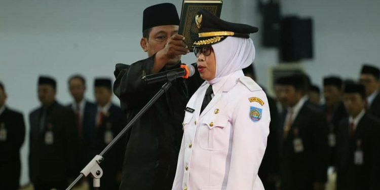 SLAWI – Setelah menuntaskan periode pemerintahannya selama tiga bulan menggantikan Bupati Tegal Enthus Susmono yang tutup usia pada bulan Mei 2018 lalu, Bupati Tegal Umi Azizah kembali dilantik Gubernur Jawa Tengah Ganjar Pranowo hari Selasa (8/1) ini di Semarang. Berbeda dengan pelantikan sebelumnya, pelantikan bupati perempuan pertama dalam sejarah pemerintahan Kabupaten Tegal ini merupakan hasil Pilkada Serentak Tahun 2018 lalu. Berpasangan dengan wakilnya, Sabilillah Ardi, Bupati Tegal Umi Azizah akan memimpin jalannya Pemerintahan Kabupaten Tegal untuk periode 2019-2024.