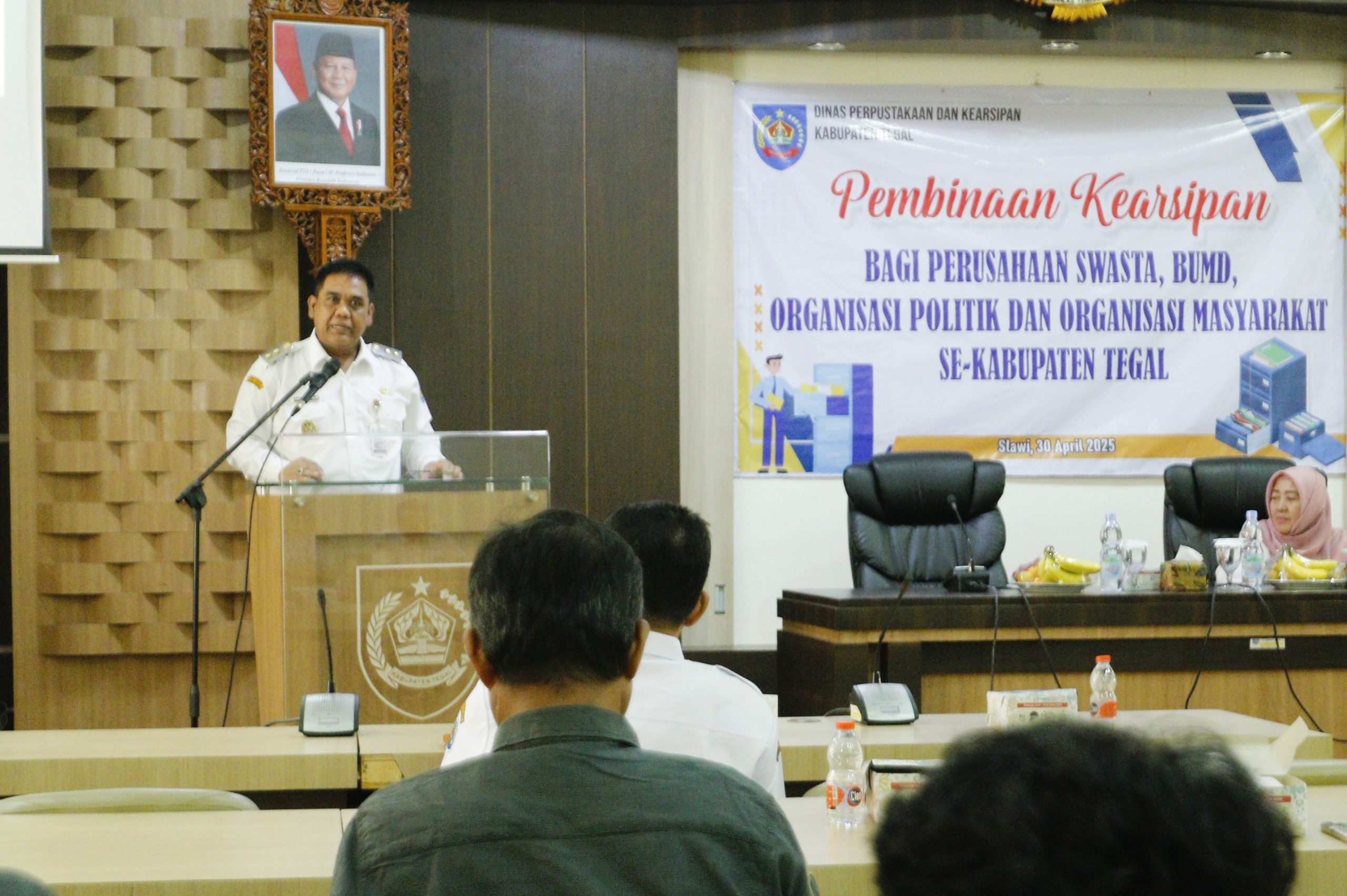 Slawi – Wakil Bupati Tegal Ahmad Kholid mengingatkan pentingnya merawat dan mengelola arsip sebagai bukti pertanggungjawaban sekaligus bukti jati diri setiap entitas. Pesan ini disampaikannya saat membuka acara Pembinaan Kearsipan untuk BUMD, Perusahaan Swasta, Organisasi Politik dan Organisasi Kemasyarakatan di Kabupaten Tegal di Ruang Rapat Bupati Tegal, Rabu (30/04/2025).