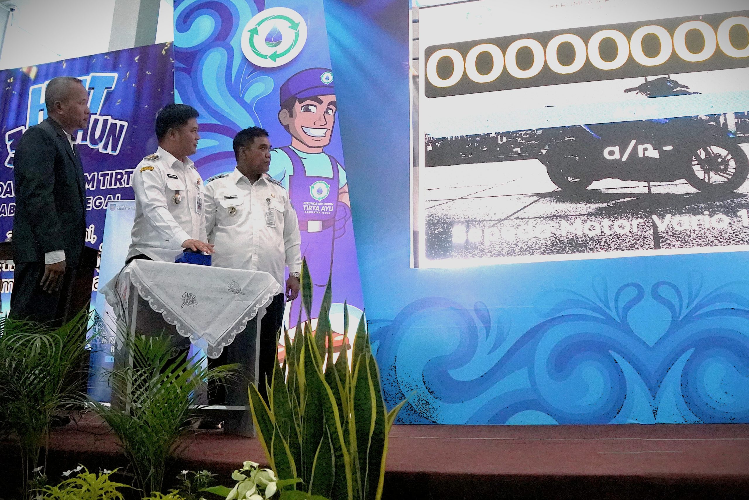 Slawi – Sebagai bentuk penghargaan kepada pelanggan setianya, Perusahaan Umum Daerah (Perumda) Air Minum Tirta Ayu Kabupaten Tegal memberikan reward. Hadiah undian utama berupa dua unit sepeda motor matic berhasil diraih warga Desa Jatiwangi, Kecamatan Pagerbarang dan Desa Dukuhwaru, Kecamatan Dukuhwaru.