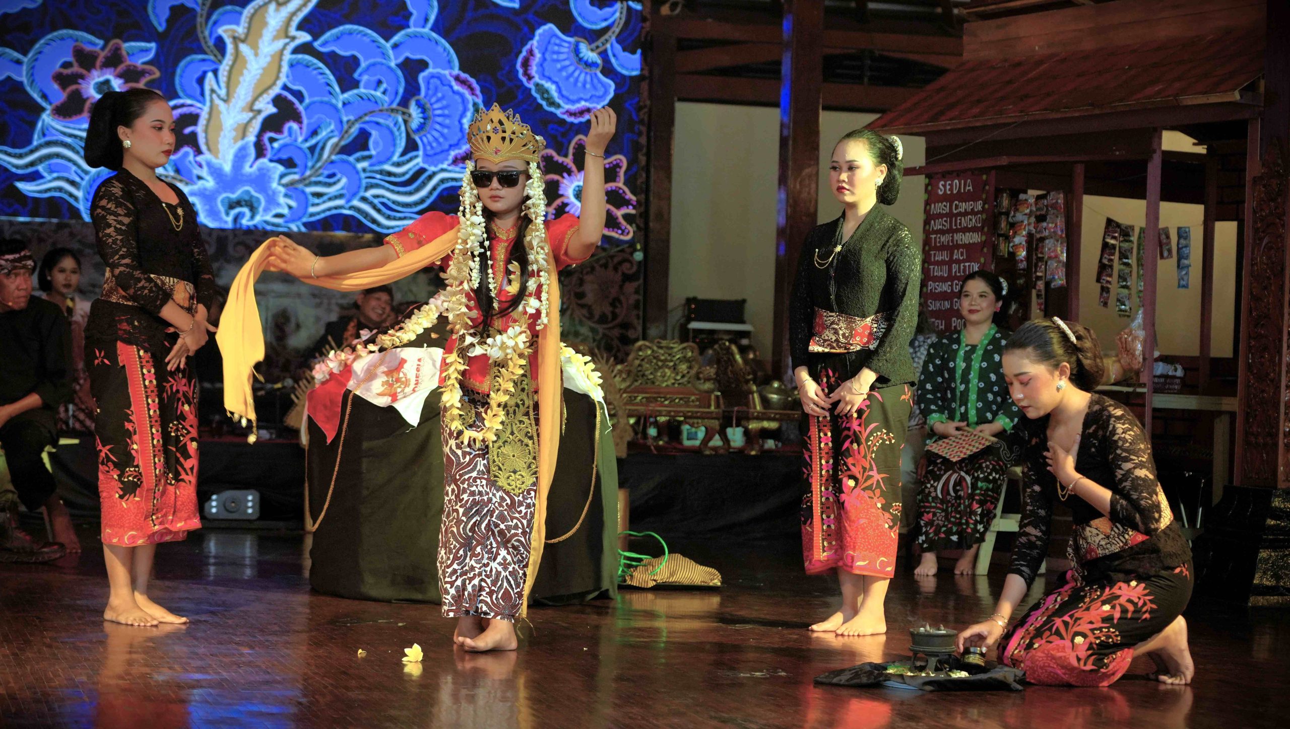 Menakjubkan, si gadis telah berubah wujud dan terlepas dari ikatannya. Ia tampak mengenakan pakaian penari, mahkota, selendang, hingga kacamata hitam. Ia pun menari lemah gemulai mengikuti irama gamelan.
