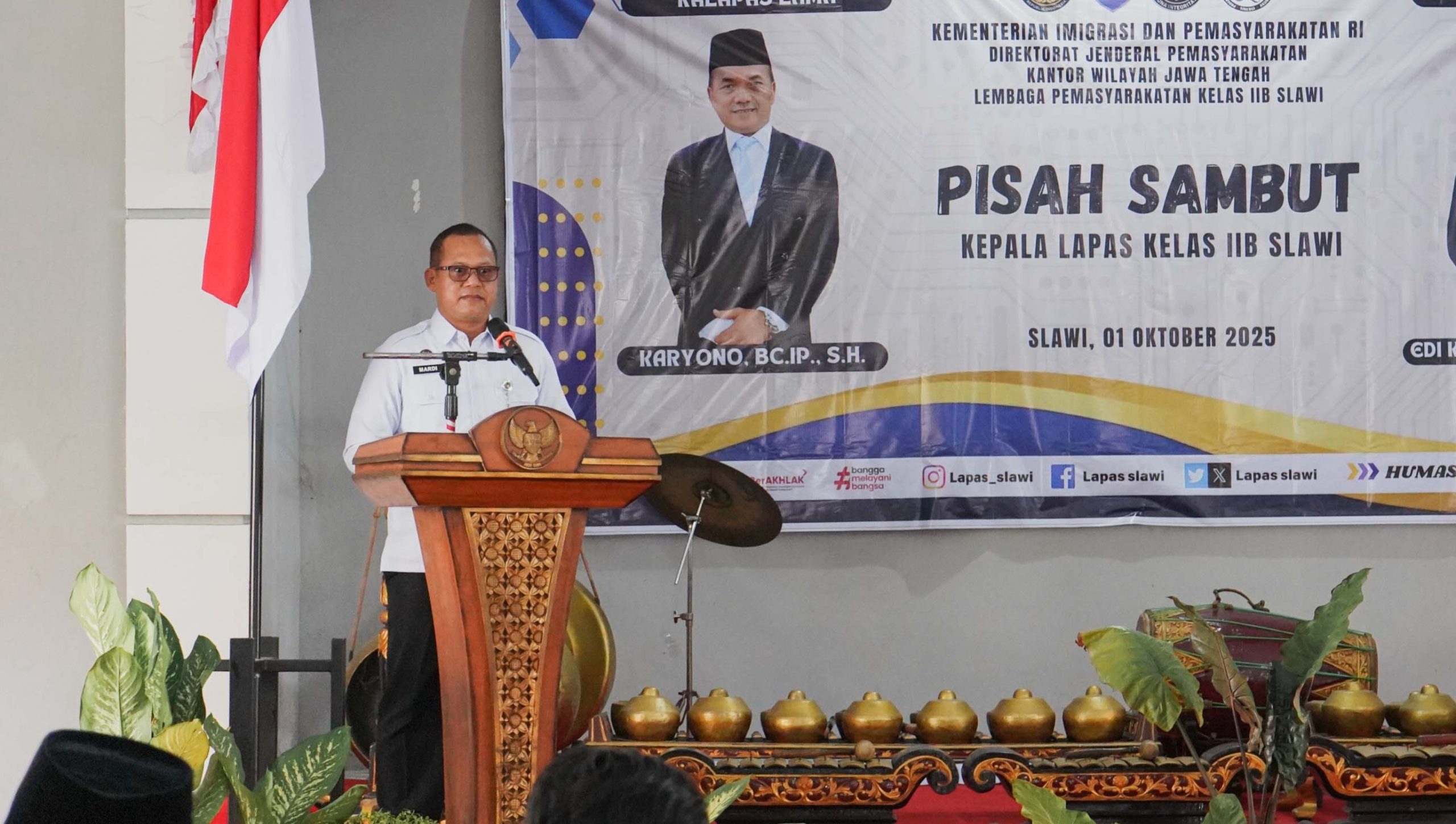 Lebaksiu – Kepala Lembaga Pemasyarakatan (Lapas) Kelas IIB Slawi Edi Kuhen menegaskan komitmennya melanjutkan estafet kepemimpinan yang telah dibangun kepala Lapas sebelumnya, Karyono. Pernyataan ini ia sampaikan saat acara lepas sambut Kepala Lapas Kelas IIB Slawi ini berlangsung di Aula Lapas Slawi, Rabu (01/10/2025).