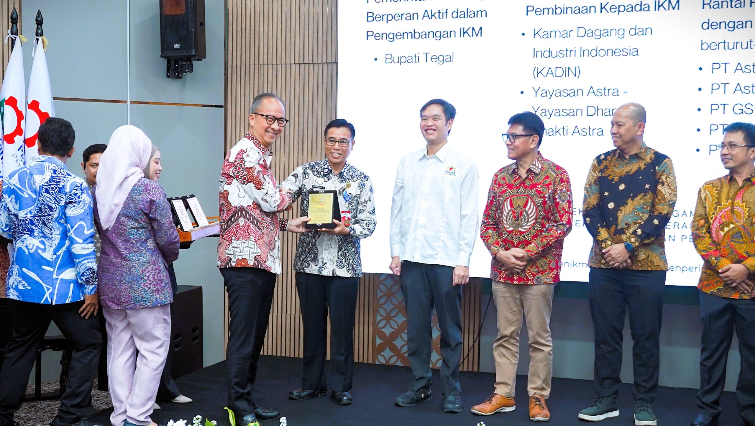 Jakarta – Dinilai berperan aktif dalam mengembangkan industri kecil menengah (IKM), Pemerintah Kabupaten Tegal raih penghargaan Link and Match dari Kementerian Perindustrian Republik Indonesia. Penyerahan penghargaan berlangsung di Ruang Garuda Gedung Kementerian Perindustrian Widya Chandra, Selasa (02/12/2025).