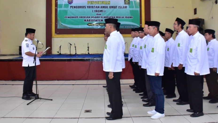Slawi – Bupati Tegal Ischak Maulana Rohman mengukuhkan Badan Pengurus Yayasan Amal Umat Islam (Yaumi) dan Yayasan Usaha Kehidupan Mulia Yaumi Kabupaten Tegal Masa Bhakti 2025-2030, sekaligus meresmikan penamaan Gedung Haji Wiennahto Yaumi Center. Pengukuhan ini berlangsung di Gedung Yaumi Center Kabupaten Tegal, Rabu (24/12/2025).