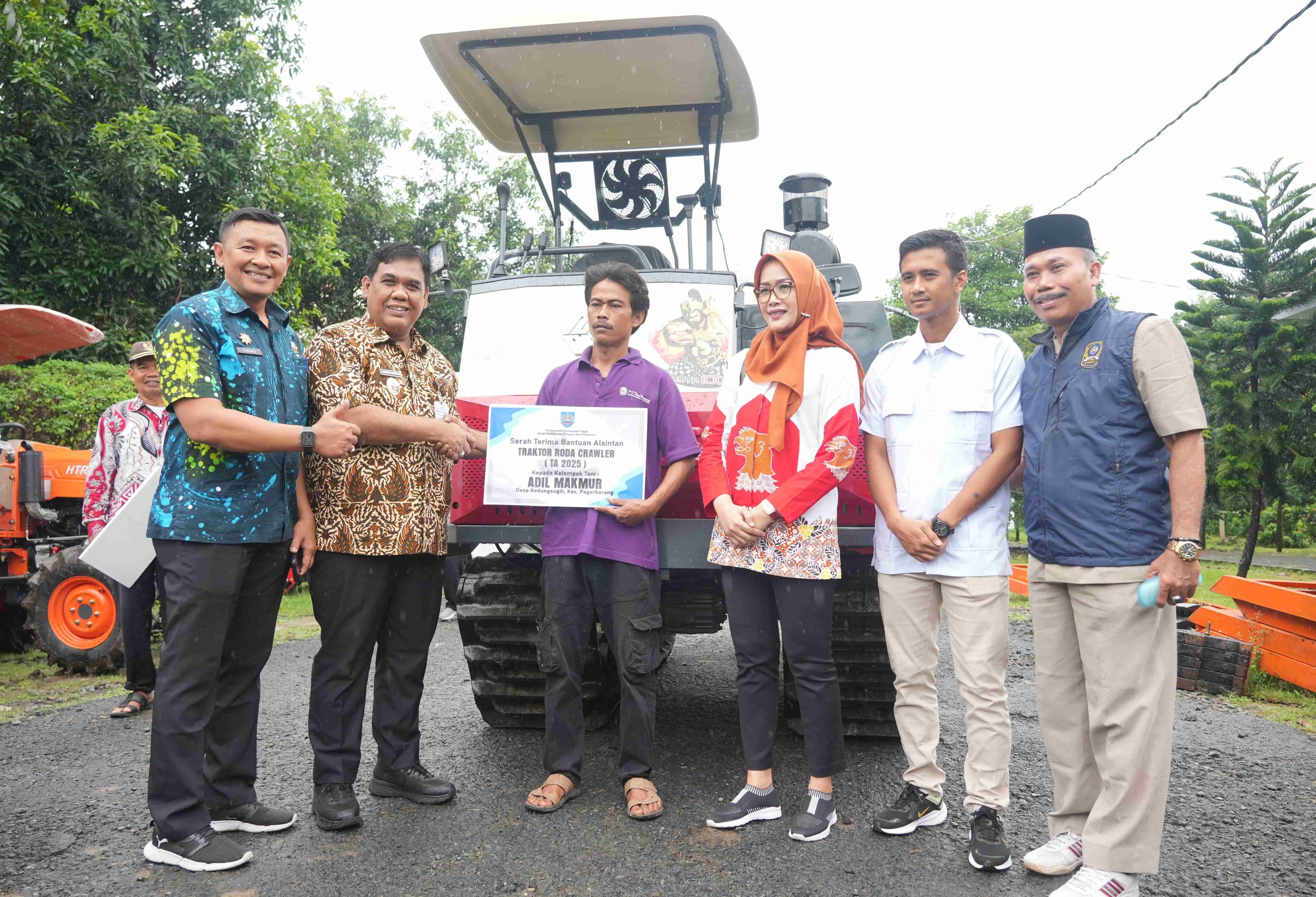 Slawi – Guna mendukung peningkatan produktivitas sektor pertanian, Pelaksana Harian (Plh.) Bupati Tegal Ahmad Kholid menyerahkan bantuan alat dan mesin pertanian atau alsintan berupa empat unit traktor crawler dan tujuh unit traktor roda empat kepada 11 kelompok tani di Kabupaten Tegal.