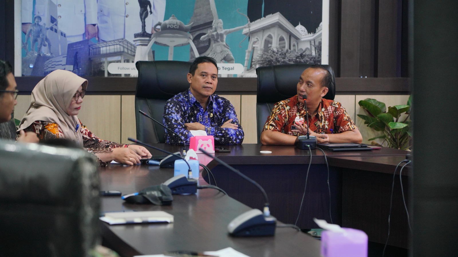 Slawi — Pemerintah Kabupaten (Pemkab) Tegal menerima kunjungan studi referensi dari Pemerintah Kabupaten Grobogan terkait pengadaan dan operasional videotron di Ruang Rapat Sekda Kabupaten Tegal, Rabu (05/03/2026). Kunjungan ini dilakukan untuk mempelajari pengalaman Pemkab Tegal dalam pengadaan dan pengelolaan videotron sebagai media informasi publik sekaligus mendukung penataan kawasan perkotaan.